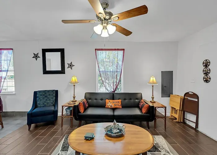 Mardi Gras Nola Retreat W Private Backyard Villa New Orleans offers swift access to various city sites, such as the Atelier Vie, situated nearly 5 minutes' walk away. Located 3.4 km from the kid-friendly museum "Audubon Butterfly Garden and Insectarium", this property provides Wi-Fi and private car parking.